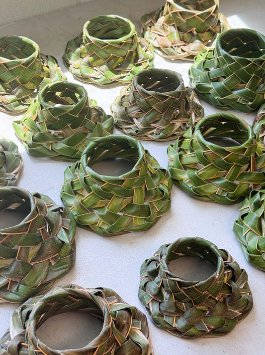 If you ordered a pāpale lau niu our weaving experts will weave your custom hat with love! Turnaround time is 2-6 weeks!